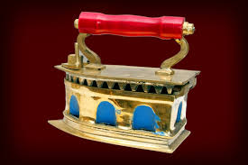 அகல அடிப்பாகமுள்ள ஒரு பித்தளை சொம்பு வினோத வடிவத்தில் இருந்தது.அதில் கொதிக்ககொதிக்க வெந்நீர் ஊற்றி அதன் வாய்ப்பகுதியை சிறு துண்டால் சுற்றி அதை கையால் லாவகமாகப் பிடித்துக் கொண்டு சூடான அதன் அடிப்பகுதி கொண்டு துணியின் சுருக்கங்களை தேய்த்து நீக்குவார்.