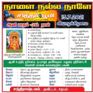 15-07-2021 – வியாழக்கிழமை, ஆனி 31, பிலவ வருடம் – 2021
