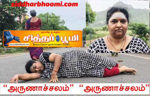 திருவண்ணாமலை கிரிவலம் 14 கிலோமீட்டர் தூரமுள்ள அண்ணாமலையார் மலையை “அருணாச்சலம்¸ அருணாச்சலம்” என்ற பக்தி முழக்கத்துடன் வெயிலில் அங்கப்பிரதட்சணமாக சுற்றி வந்த ஆந்திராவை சேர்ந்த தீவிர சிவபக்தை அருணாச்சலமாதவி என்ற பெண்.