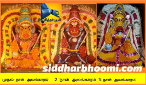 10-ந் தேதி மஞ்சள் அலங்காரமும், 11-ந் தேதி குங்கும அலங்காரமும், 12-ந் தேதி சந்தன அலங்காரமும், 13-ந் தேதி தேங்காய்பூ அலங்காரமும், 14-ந் தேதி மாதுளை அலங்காரமும், 15-ந் தேதி நவதானிய அலங்காரமும், 16-ந் தேதி வெண்ணெய் அலங்காரமும் நடைபெறுகிறது.17-ந் தேதி பூ அலங்காரமும், 18-ந் தேதி காய்கனி அலங்காரமும் நடைபெறுகிறது.
