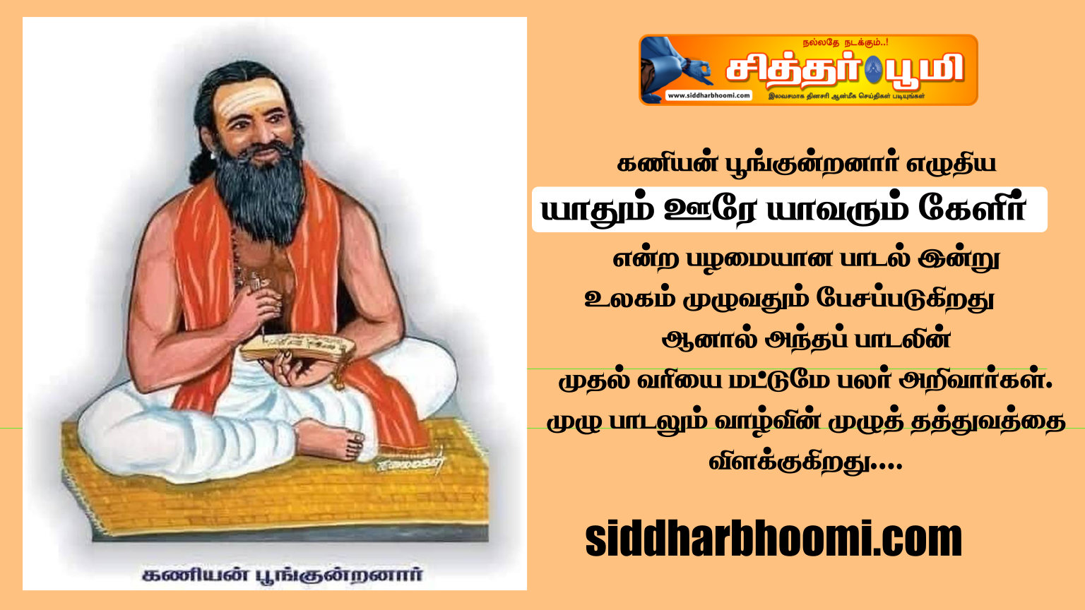 கணியன் பூங்குன்றனார் எழுதிய ‘யாதும் ஊரே யாவரும் கேளிர்’