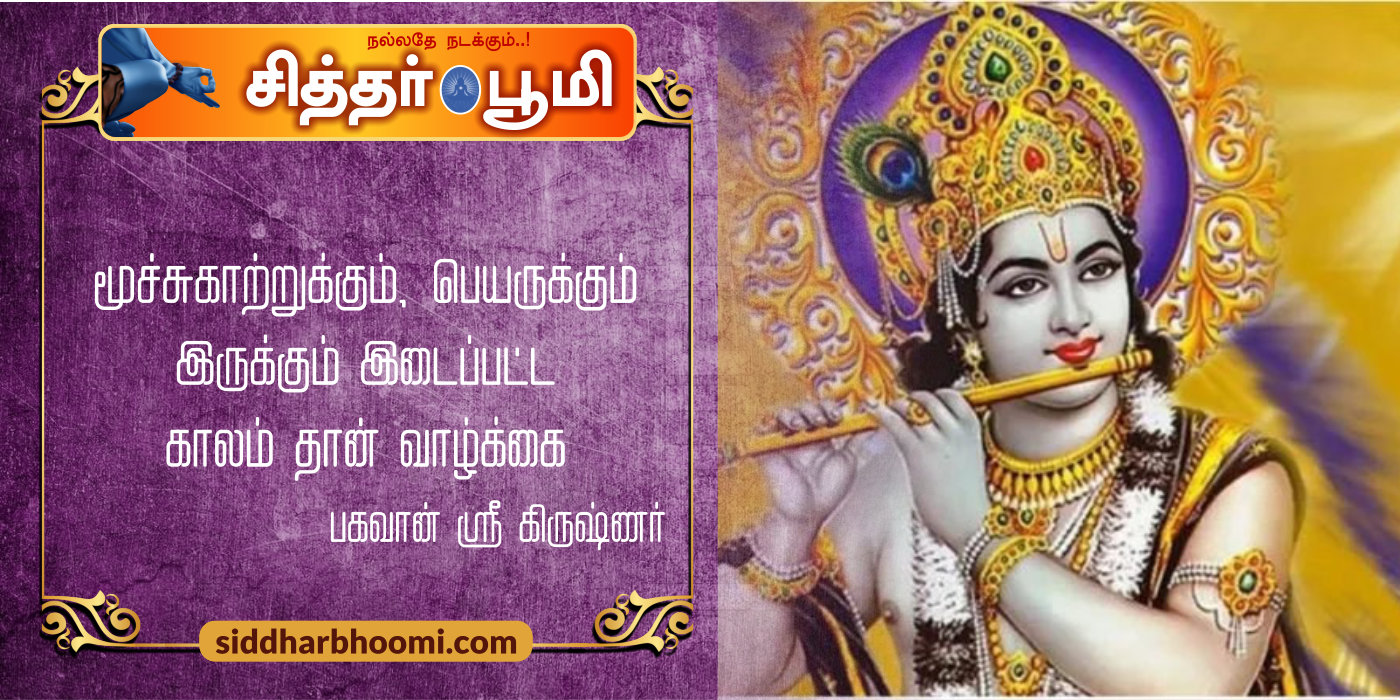 “மூச்சுகாற்றுக்கும், பெயருக்கும் இருக்கும் இடைப்பட்ட காலம் தான் வாழ்க்கை என்று ” பகவான் ஸ்ரீ கிருஷ்ணர் கூறினார்