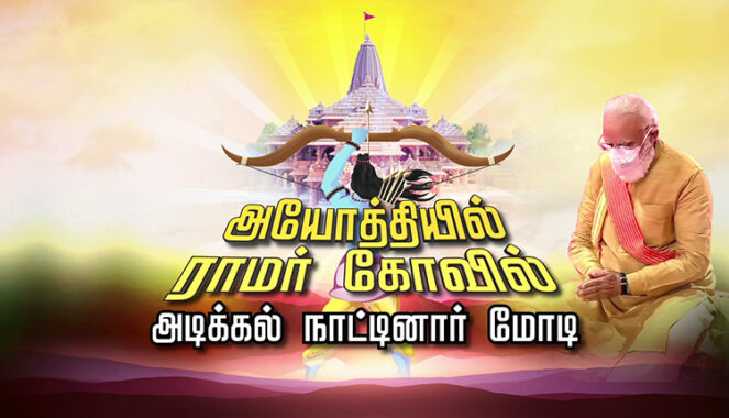 உத்தர பிரதேச மாநிலம் அயோத்தியில் ராமர் கோயில் கட்டுவதற்கு அடிக்கல் நாட்டினார் பிரதமர் நரேந்திர மோதி.